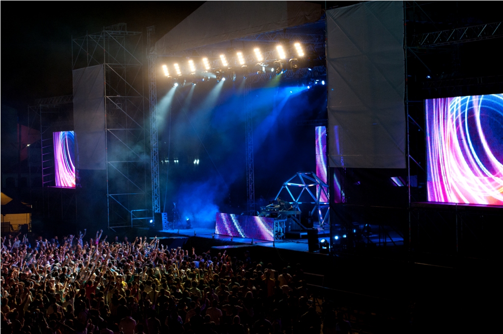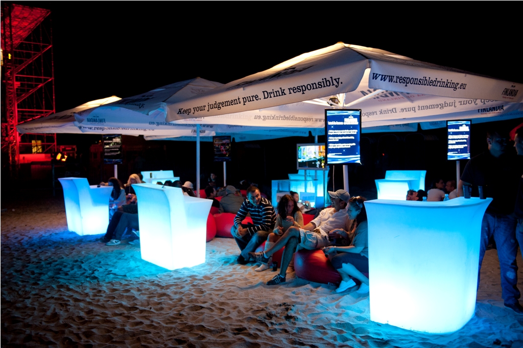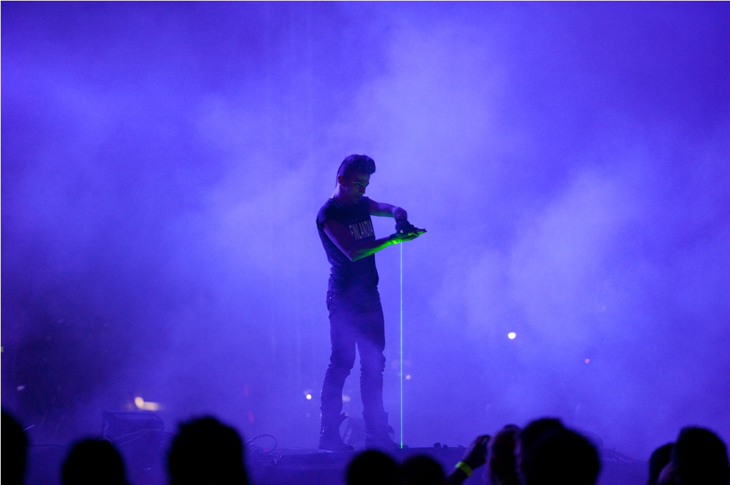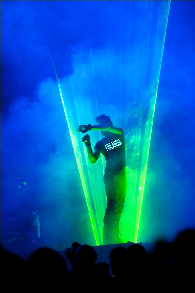 Momentul sponsorului a fost cucerit de către Finlandia, de la care mă așteptam oricum să facă niște chestii mișto, după ce am văzut la Arenele Romane, la concertul lui Tiesto. Dincolo de standurile de băutură și de terasa foarte chic amenajată pe plajă, cei de la Finlandia au adus doi dansatori care mânuiau lasere într-o coregrafie foarte entertaning, pe piesa lui Deadmau5 – Raise Your Weapon, care e genială!
