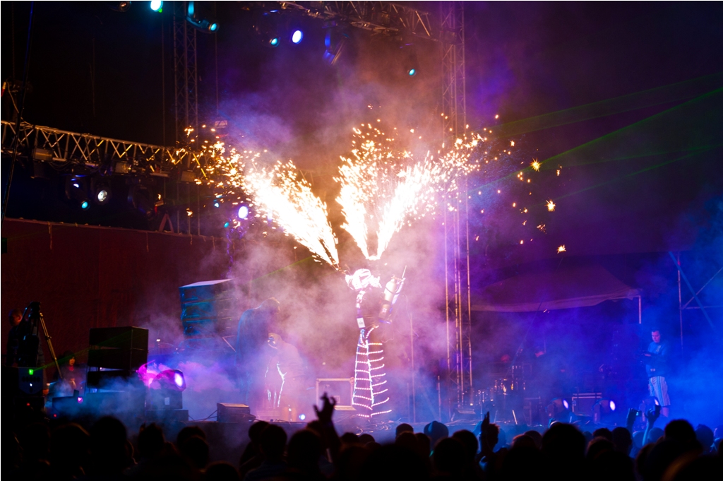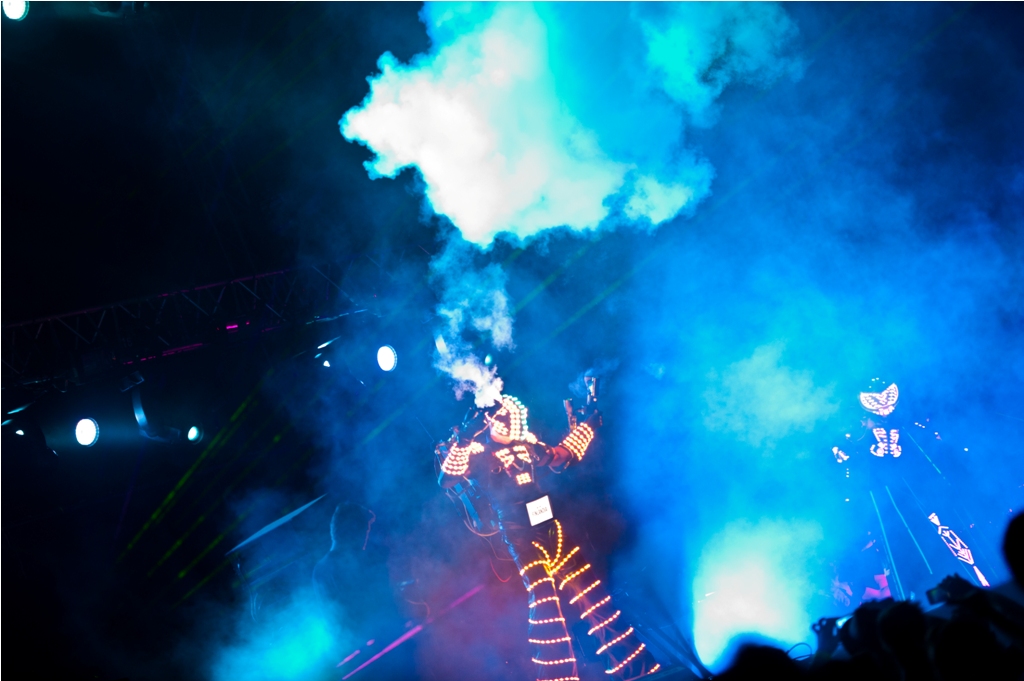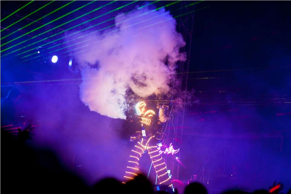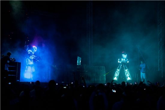 Și pentru că nu era de-ajuns, după momentul coregrafic au urcat pe scenă doi roboți imenși, acoperiți cu led-uri, dotați cu lasere, fum și artificii, care i-a făcut pe toți cei din public să scoată telefoanele și să filmeze. Very, very cool!