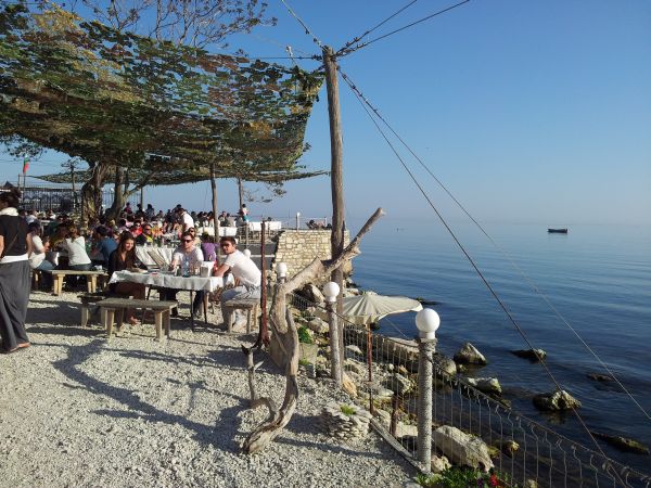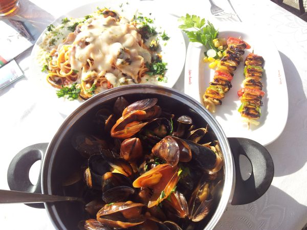 Localnicii rup nițică română, atât cât trebuie pentru a-ți aduce la masă scoici cu miros de fum, scoici cu sos picant și scoici cu paste și multă mozzarella. Lucruri simple, oferite de natură, ca și liniștea de pe malul de stâncă pe care stai sub soare, privind marea liniștită.
