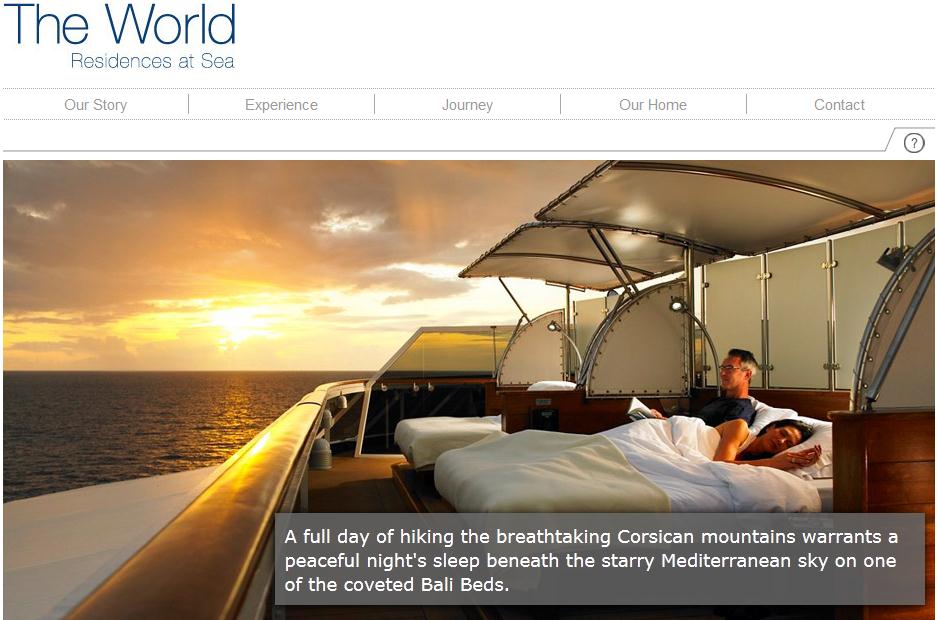 Am dat peste acest site din întâmplare, navigând, deocamdată, oceanul internetului, și am rămas surprinsă să aflu că există o croazieră de lux continuă în jurul lumii, pe un yacht imens, ai cărui rezidenți aleg să trăiască pe el permanent. Iată un fragment din descrierea proiectului: