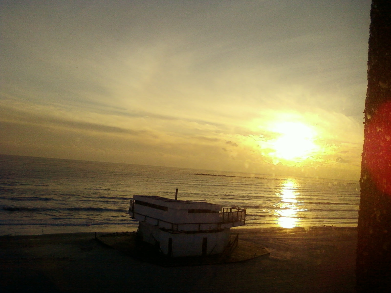 Trezitul la malul mării, cu valurile care se sfârșesc la țărm pe fundal și un răsărit superb.
