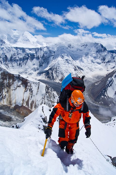 Am văzut în ochii celor doi acea motivație aproape supraomenească de a cuceri un vârf important, atât fizic, cât și spiritual, mai ales că echipa de alpiniști își propune să ajungă pe Cho Oyu fără tuburi de oxigen, ceea ce ar fi o premieră mondială. I-am auzit pe Adrian și pe Tibi însuflețiți de scopul lor, i-am ascultat cu atenție în timp ce vorbeau cu pasiune despre steagul românesc pe care vor să-l ducă pe vârf și mi-am promis că măcar cititorii acestui blog vor afla despre ei.