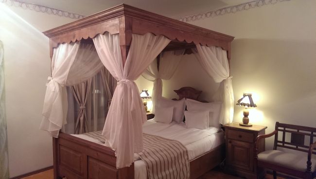 O cameră impecabilă și-un pat cu baldachin ne așteptau scăldate într-o lumină difuză și odihnitoare. Toată șederea noastră la Vila Franka a fost marcată de servicii impecabile, confort exemplar și un personal foarte bine pregătit.